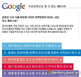 [이벤트] 구글로 할 수 있는 100가지 일! 그리고, 구글 검색 타임! 얼마 전 구글로 할 수 있는 100가지 일이라는 제목의 애드센스 광고를 봤습니다. 예상하시다시피 이것은 구글이 자체적으로 광고(혹은 적당한 광고파트너를 찾지 못해서 출력된 것)한 것으로 한국에서 유독 입지가 좁은 구글 코리아의 "구글 알리기" 전략 중 하나인 것 같습니다. 아무튼, 재미있는 제목에 끌려 링크를 클릭해보니 아래와 같은 페이지가 나오더군요... 페이지 주소도 기억하기 쉬운 http://www.google.co.kr/100things 입니다. 센스있죠? ^^; 현재 해당페이지에서는 100가지 일중 30가지만 볼 수 있었는데요... 아마도 시간을 두고 조금씩 업데이트하는 것 같습니다. (처음 이 페이지를 봤을 때는 20여개 정도였던 것 같네요 ^^;) 이 중에서 관심있는 정보를 클릭하면 해당 항.. 더보기 이전 1 ··· 114 115 116 117 118 119 120 ··· 610 다음